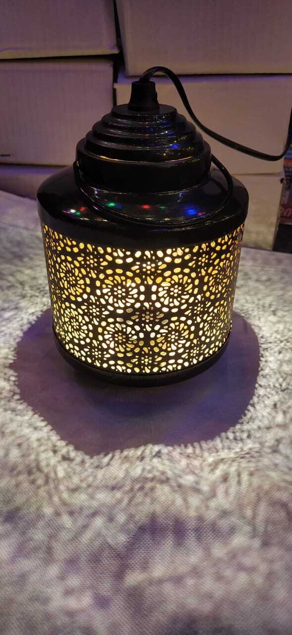 Crafted on metal this Moroccan table lamp illuminates your room, garden, party place in a unique way creating a play of light & shadow. Ideal decor for your console table. The cuts engraved on this lamp is reflected on the place where it’s kept. Comes in three sizes (S,M,L), golden from inside with black outer. Use it as a candle holder from below or as a lamp from top.